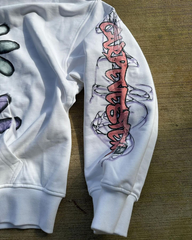 เสื้อฮู้ดซิปบ็อกซี่โอเวอร์ไซส์ผ้าฝ้าย100% ระบายอากาศพิมพ์ลาย DTG ที่ด้านหน้าและแขนเสื้อสำหรับฤดูใบไม้ร่วง