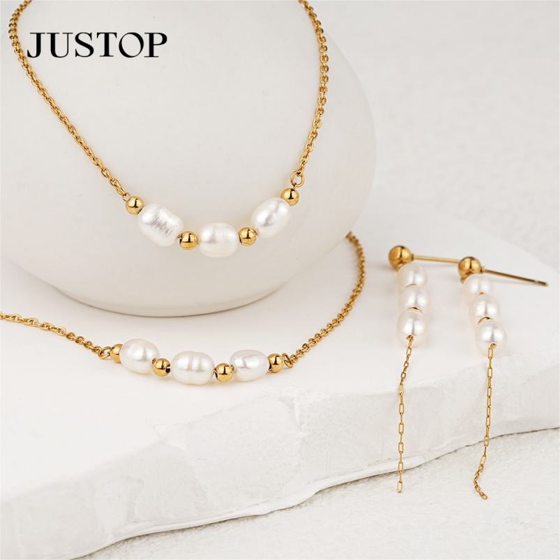 PVD 18K 24K ต่างหูมุกธรรมชาติธรรมชาติสร้อยข้อมือเครื่องประดับแฟชั่นสร้อยคอไข่มุกพร้อมเสน่ห์