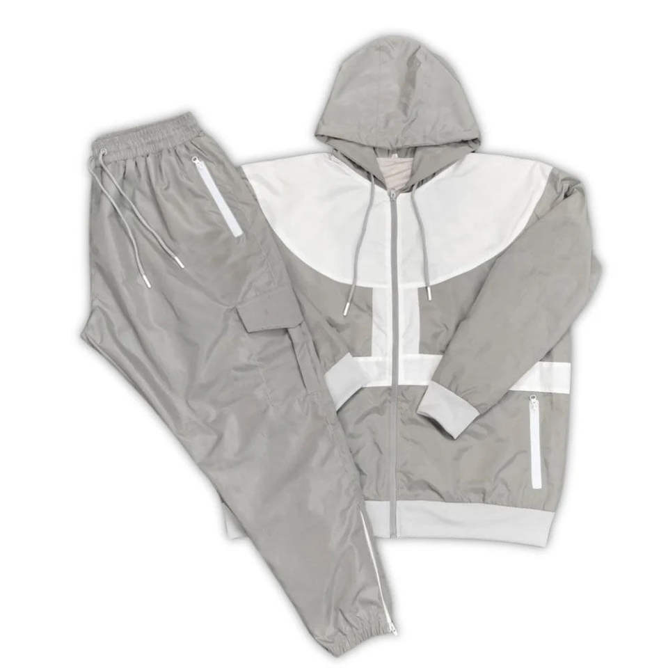 ชุดวอร์มไนลอนแบบแพทช์เวิร์คสั่งทำขายส่ง เสื้อแจ็คเก็ตกันลมแฟชั่นและกางเกงขายาว ชุดวอร์ม 2 ชิ้นสำหรับผู้ชาย