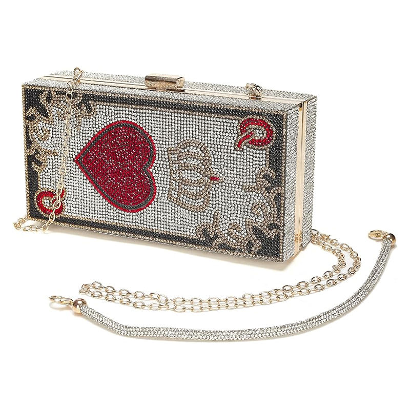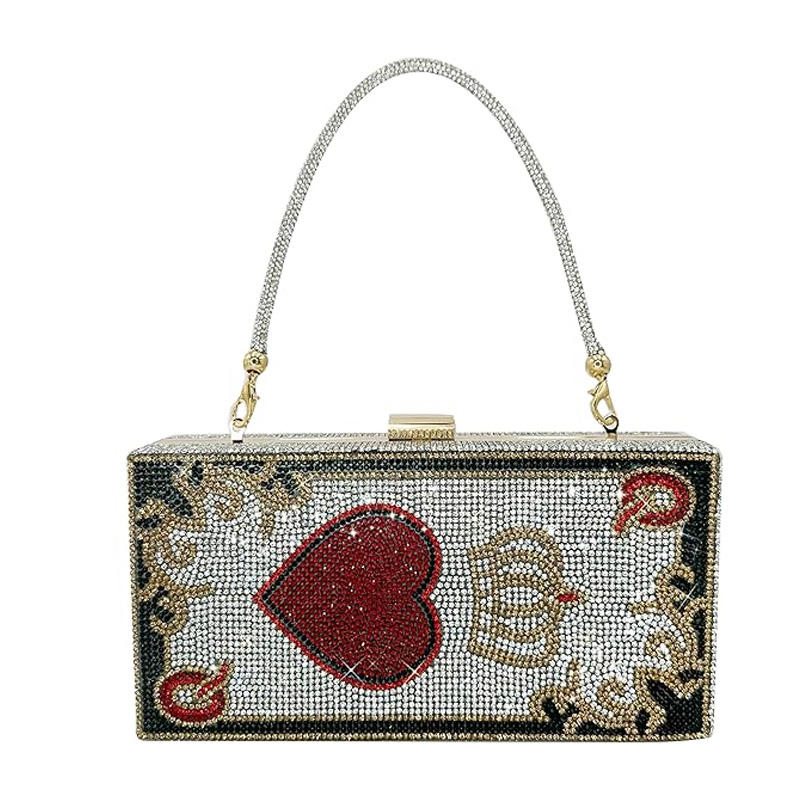 กระเป๋าคลัทช์คริสตัลลายเพชรแบบสั่งทำขายส่ง กระเป๋าเงินประดับเพชรระยิบระยับ กระเป๋าถือใส่ไพ่โป๊กเกอร์ สำหรับงานปาร์ตี้
