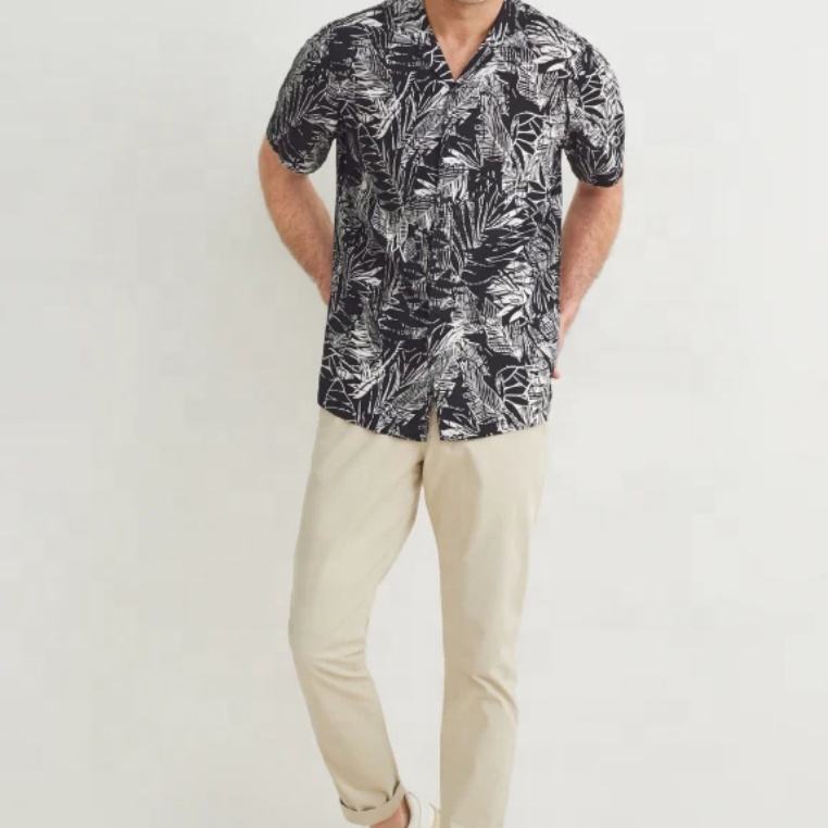 เสื้อเชิ้ตฮาวายลายพิมพ์ผ้าฝ้าย 100% สำหรับผู้ชาย สไตล์ฤดูร้อนชายหาด ติดกระดุม ออกแบบลายโลโก้ตามสั่ง ขายส่ง