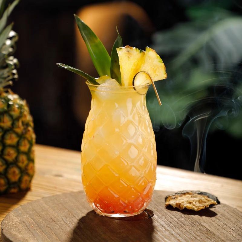 แก้วค็อกเทลรูปทรงสับปะรดแบบกำหนดเองขายส่ง แก้วรูปทรงสับปะรดส่วนบุคคล