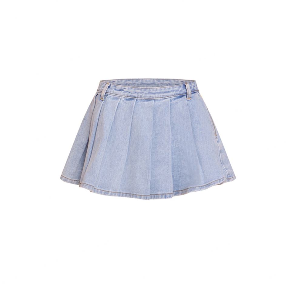 กระโปรงพลีทสั่งทำขายส่งสำหรับผู้หญิง คุณภาพสูง ผ้าฝ้ายวินเทจ ผ้ายีนส์ฟอกสีอ่อน กระโปรงสั้นผู้หญิง