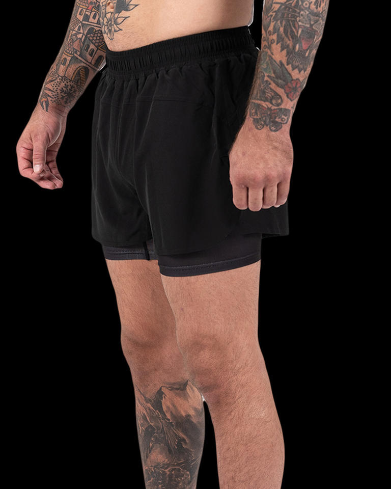 กางเกงขาสั้นฝึกซ้อม MMA ของผู้ชายแบบรูดปิดกลางเอวขนาดพลัสไซส์แห้งเร็วสำหรับใส่ไปยิมฟิตเนส