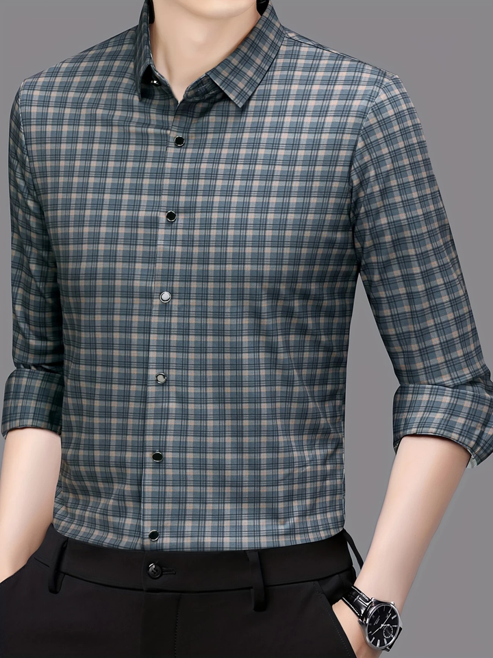 Long Sleeve Plaid Print Shirt Men's Casual Shirt Polyester Spandex Blend Machine Washable Non-Transparent Regular Fit shirt
