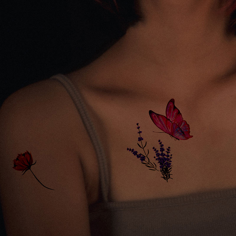 สติ๊กเกอร์แทททูชั่วคราวลายดอกไม้ 3 มิติ กันน้ำ พิมพ์ลายตามสั่ง ขายส่ง ยอดนิยม สำหรับติดตัว แขน มือ สีสันสดใส