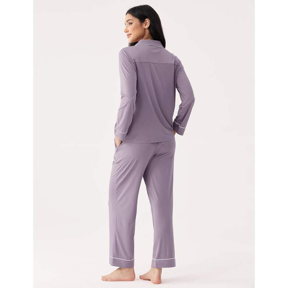 ชุดนอนผู้หญิงผ้าวิสโคสไม้ไผ่พรีเมียมสั่งทำขายส่ง แขนยาวติดกระดุม ชุดนอนโมดอล 2 ชิ้น ชุดนอนผ้าฝ้ายสำหรับผู้หญิง