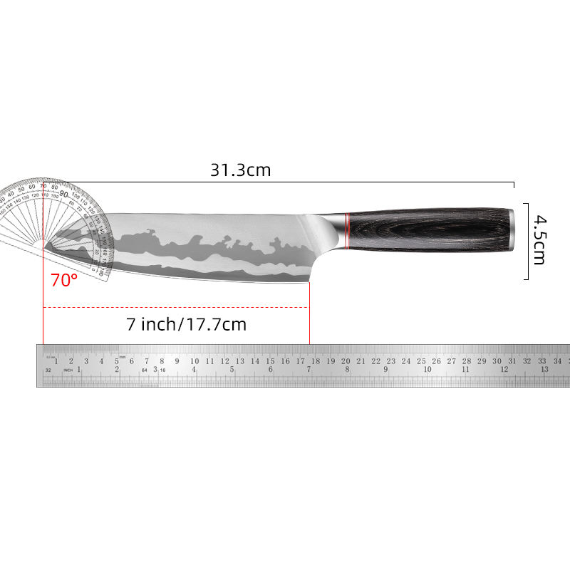 มีดทำครัวสแตนเลสมีดเชฟมืออาชีพพร้อมที่จับไม้