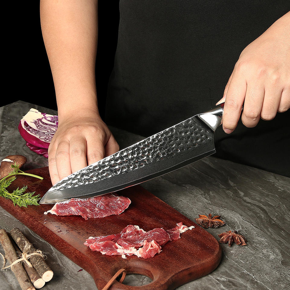 มีดเชฟเหล็กดามัสกัสทำมือพร้อมที่จับไม้