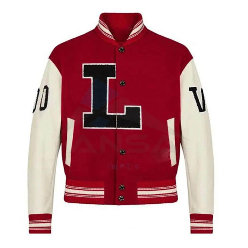 แจ็คเก็ตวาร์ซิตี้ขนสัตว์พรีเมียมสั่งทำขายส่ง พร้อมแขนหนังแท้ คอตั้ง แจ็คเก็ตเลตเตอร์แมนแบบ OEM สำหรับกีฬาในวิทยาลัย