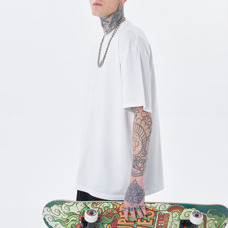 เสื้อยืดผู้ชายคอตตอน 100% แบบสวมใส่สบาย ระบายอากาศได้ดี แขนสั้น ทรงโอเวอร์ไซส์ น้ำหนักมาก ผลิตตามสั่ง ขายส่ง