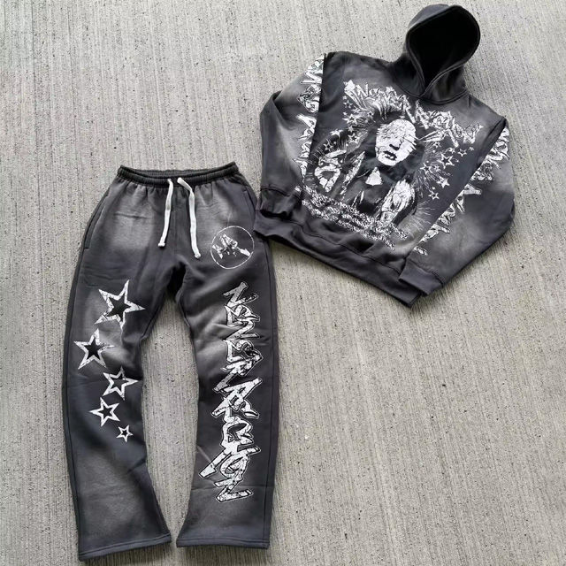 ชุดวอร์มกันหนาวแบบสวมหัวมีฮู้ดแขนยาวสำหรับผู้ชายกางเกงกันหนาวมีฮู้ดพิมพ์ลายออกแบบได้ตามต้องการ