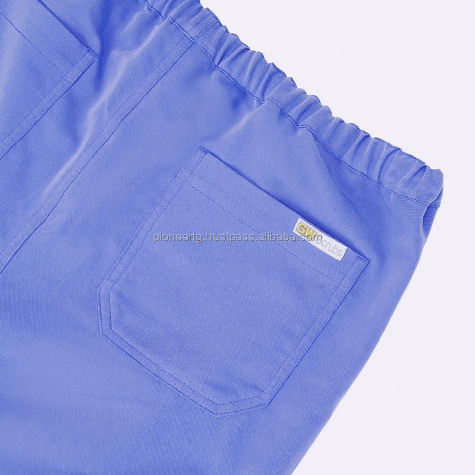 ชุดเครื่องแบบพยาบาลผ้าทอลายทแยงโพลีสแปนเด็กซ์สำหรับแพทย์โรงพยาบาล