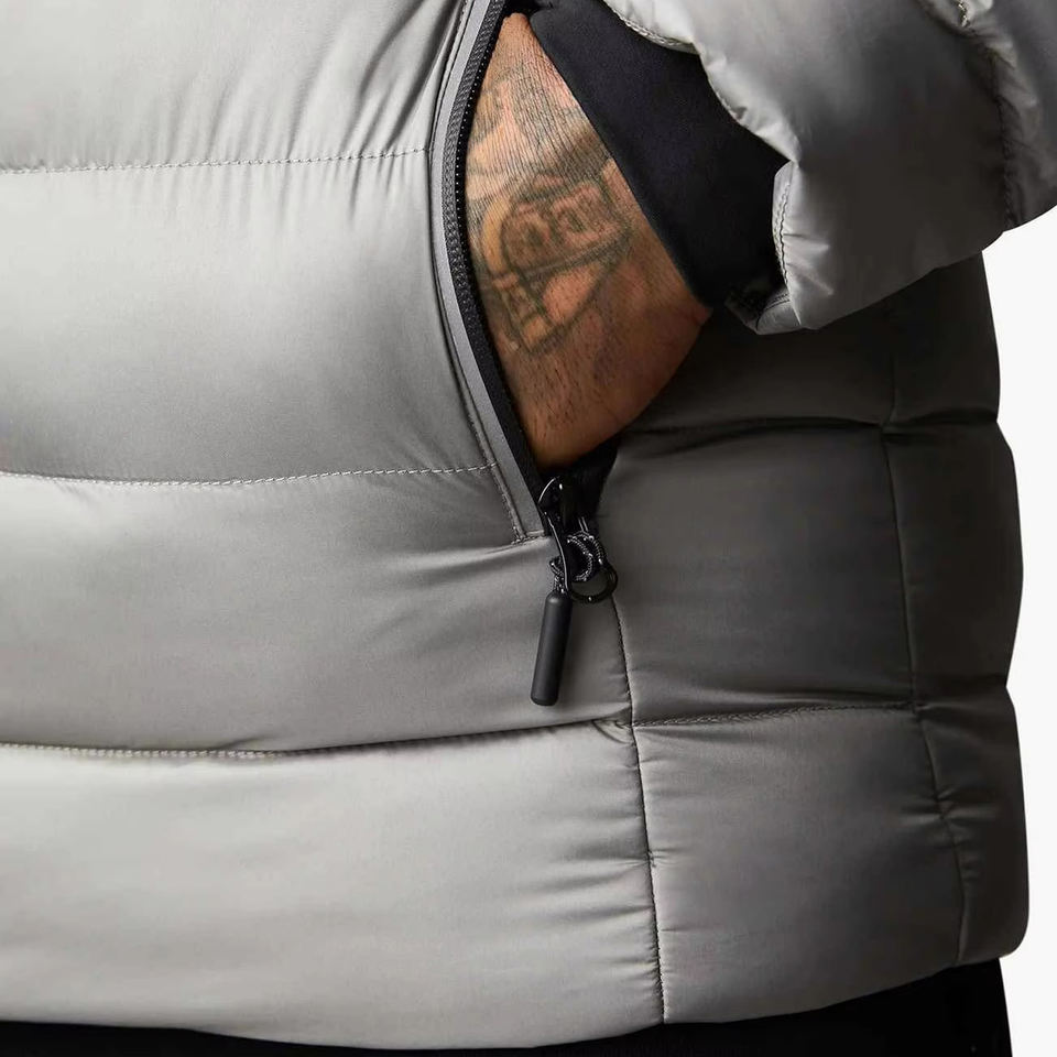 แจ็กเก็ตปลาปักเป้าสำหรับผู้ชายเสื้อแจ็กเก็ตปลาปักเป้าสีเทาสำหรับฤดูหนาวมีกระเป๋าพิมพ์ลายได้ตามต้องการ