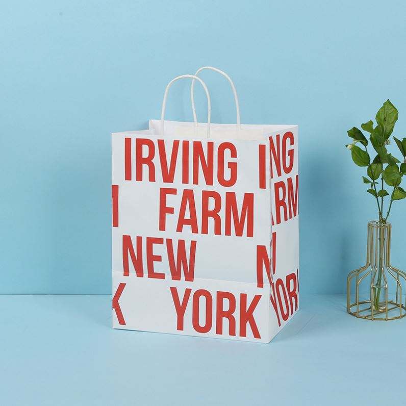 ถุงกระดาษคราฟท์สีขาวน้ำตาลพิมพ์ลายตามสั่งขายส่ง พร้อมหูหิ้ว สำหรับร้านอาหาร ถุงใส่กลับบ้าน ถุงอาหารแบบนำกลับบ้าน