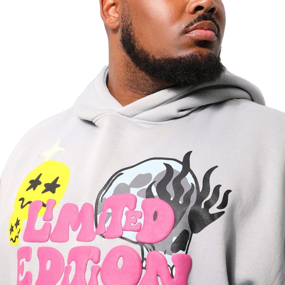 เสื้อฮู้ดพิมพ์ลายพัฟฟ์สั่งทำขายส่ง ผ้าฝ้ายฟลีซทรงโอเวอร์ไซส์ สไตล์หลวมๆ สำหรับผู้ชาย เสื้อฮู้ดพิมพ์ลายพัฟฟ์ลำลอง