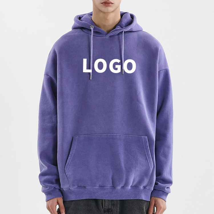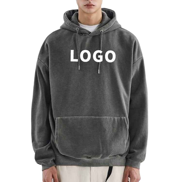 เสื้อฮู้ดดี้ผู้ชายแบบสวมหัว สไตล์สตรีทแวร์ ผ้าฝ้าย 100% ทรงหลวม ไหล่ตก ลวดลายฟอกสีแบบแอซิดวอช รับผลิตตามสั่ง พร้อมสกรีนโลโก้