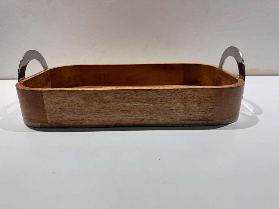 ถาดเสิร์ฟไม้สี่เหลี่ยมผืนผ้าแบบเรียบง่ายขัดเงาพร้อมหูจับ ผลิตตามสั่ง ขายส่ง เป็นมิตรกับสิ่งแวดล้อม สำหรับวางบนโต๊ะกาแฟ ดีไซน์สร้างสรรค์แบบ OEM
