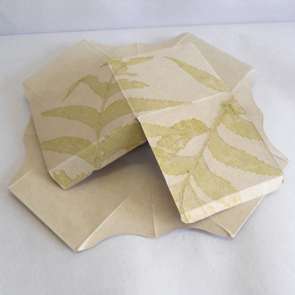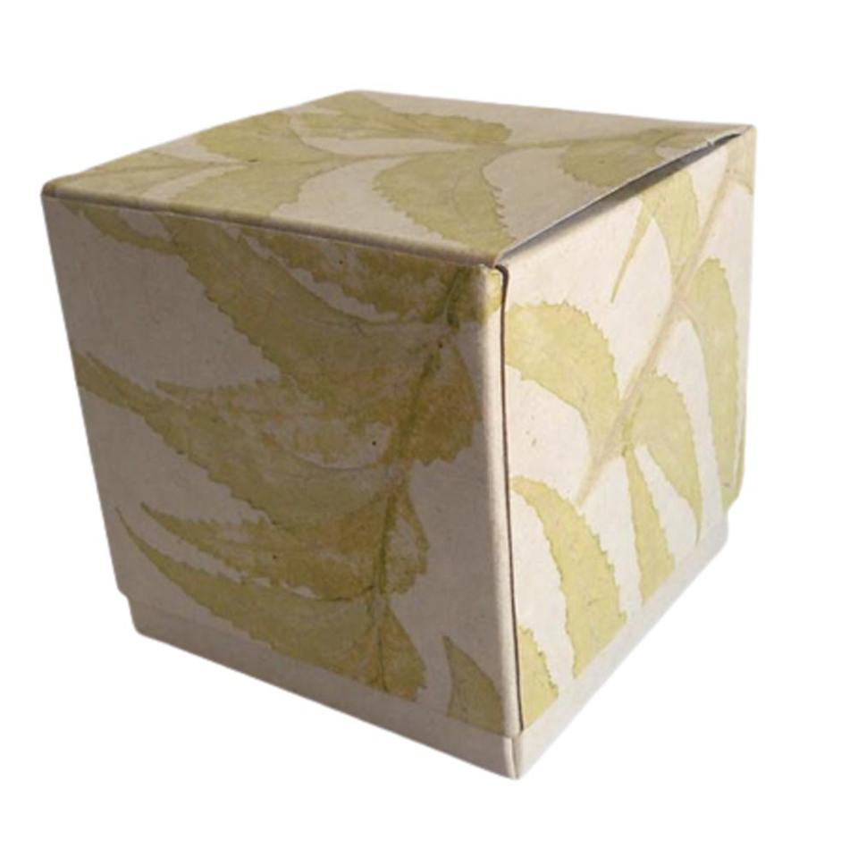 กล่องพับทำจากกระดาษป่านรีไซเคิล 100% ปราศจากกรด ผลิตตามสั่งขายส่ง พร้อมลวดลายใบไม้ธรรมชาติทั่วทั้งกล่อง