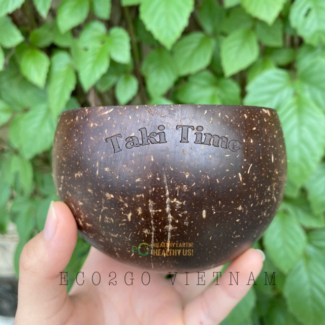 ถ้วยมะพร้าวพร้อมหลอดและกำหนดโลโก้เองจาก Eco2go เวียดนามถ้วยเปลือกมะพร้าวแบบทำมือนำกลับมาใช้ใหม่ได้