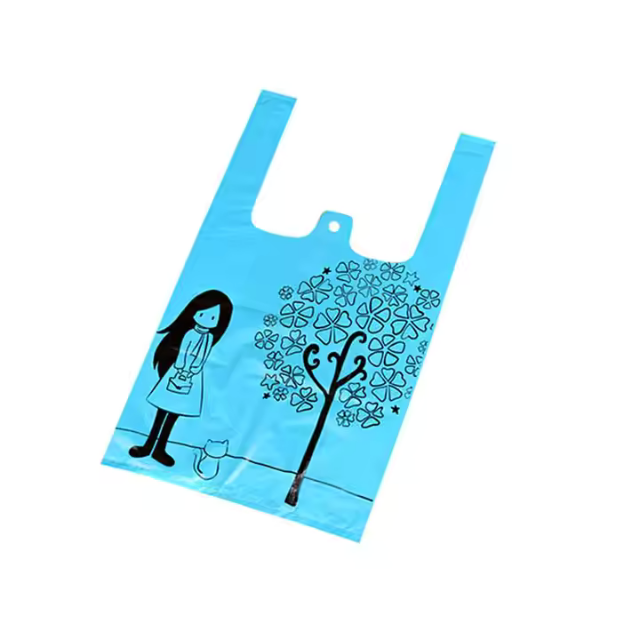 Wholesale Custom Reusable Plastic T-Shirt Bag Supermarket Suitable Grocery Shopping Carrier for Packaging Packing Custom Size
