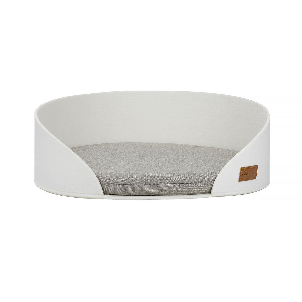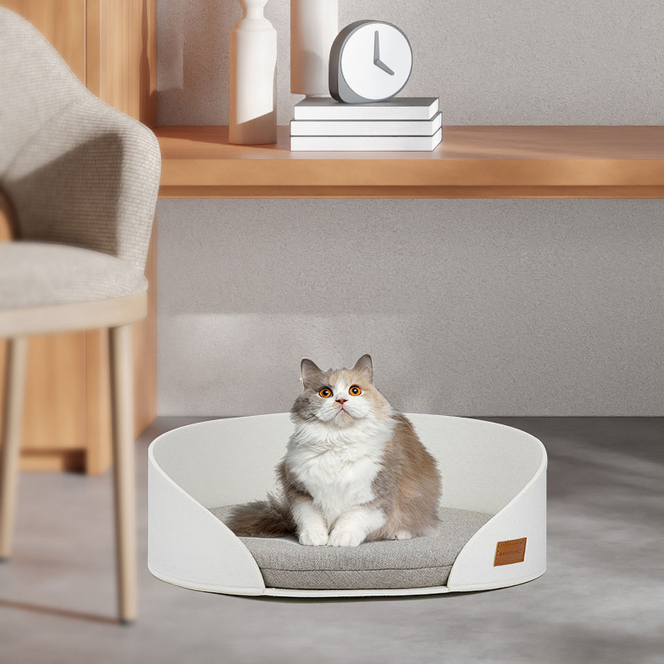 เตียงสัตว์เลี้ยงแบบพับได้ ทำจากผ้าสักหลาด รูปทรงกลม ลายเรียบ ผลิตตามสั่ง ขายส่ง เป็นมิตรกับสิ่งแวดล้อม ซักได้ พร้อมแผ่นรองขนแกะให้อุ่น สำหรับแมวและสุนัข