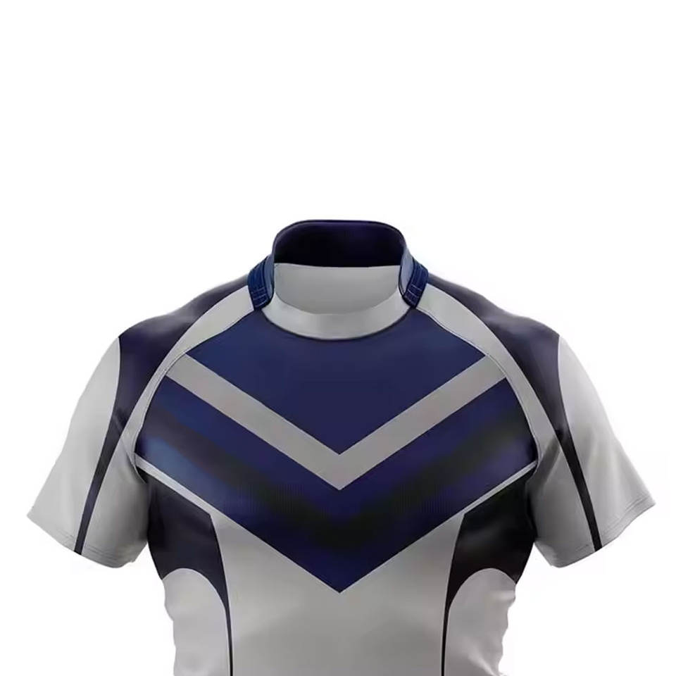 เสื้อรักบี้ระบายอากาศสำหรับผู้ชายเสื้อทีมรักบี้ของผู้ใหญ่เสื้อเจอร์ซีย์พิมพ์ซับลิเมชันตามสั่ง