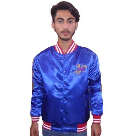 ขายส่งที่กําหนดเองซาตินเสื้อแจ็คเก็ตปัก Varsity ผ้าไหมซาตินแจ็คเก็ตบอมเบอร์ผู้ชายเบสบอลซาติน Varsity แจ็คเก็ต