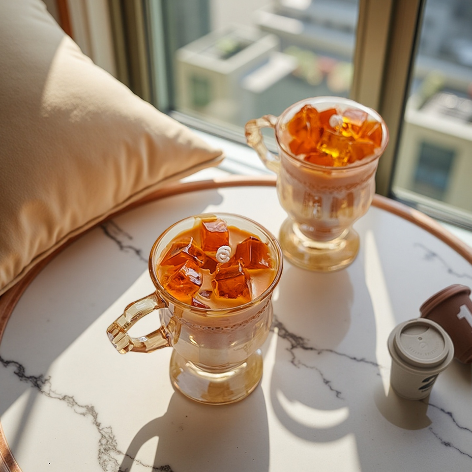 เทียนหอมแบบกำหนดเองสำหรับวางบนโต๊ะกาแฟขวดเครื่องดื่มที่สร้างสรรค์เทียนไขถั่วเหลืองพร้อมน้ำมันหอมระเหย