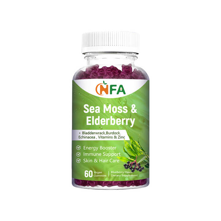 Total Carbohydrate, Total Sugars, Organic Irish Sea Moss, Black Elderberry Extract, Organic Bladderwrack, Organic Burdock Root, Echinacea Purpurea Extract, Apple Cider Vinegar, Chlorophyll, Vitamin C, Zinc, Vitamin DMain Ingredient