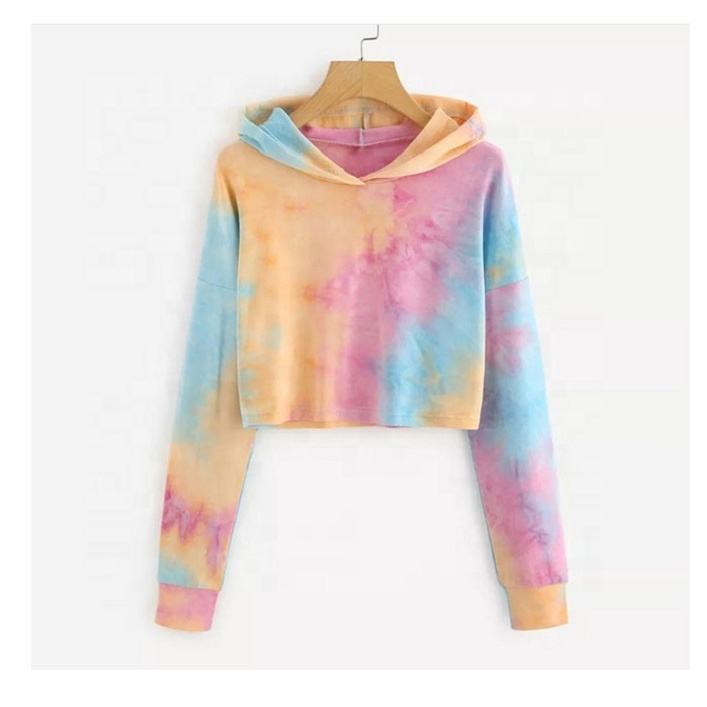 เสื้อฮู้ดแขนยาวแบบสวมหัวสำหรับผู้หญิงเสื้อครอปเซ็กซี่แบบกำหนดเองได้พร้อมเทคนิคมัดย้อมแบบมีฮู้ด
