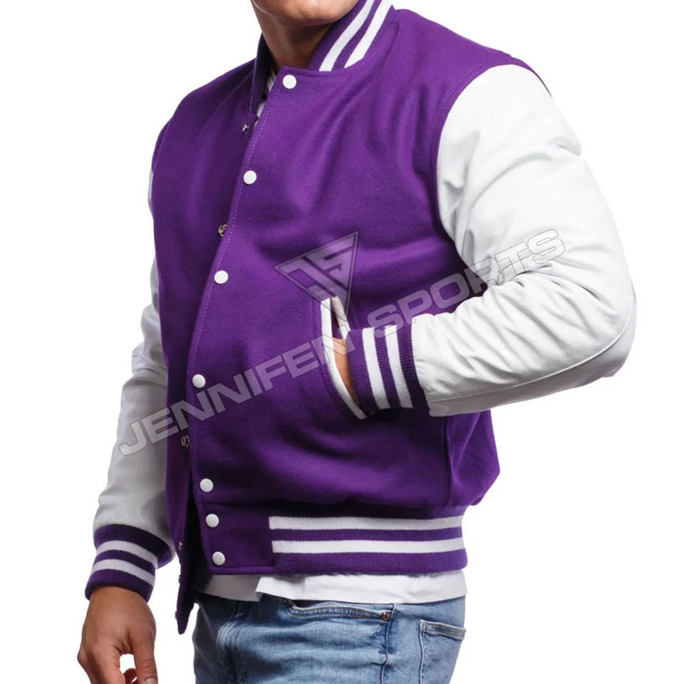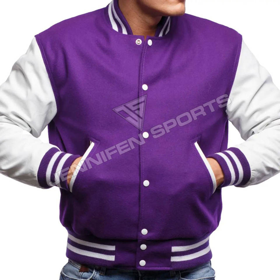 แจ็กเก็ตทีมตัวแทนแบบเรียบที่กำหนดเองขายส่งเสื้อขนสัตว์เปลือกแขนหนังกระดุมกดปิดด้านในบุผ้า