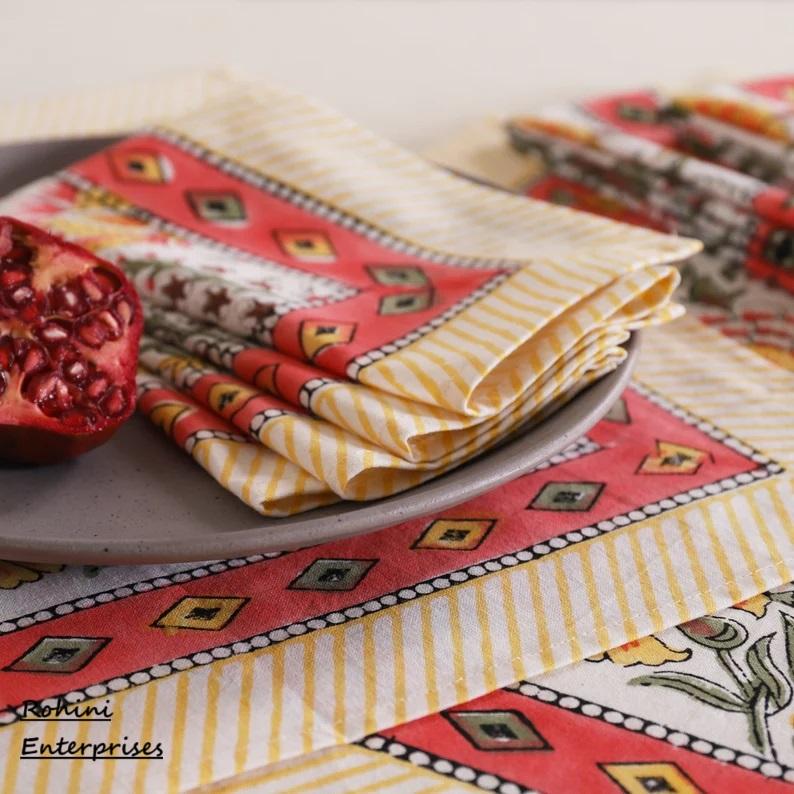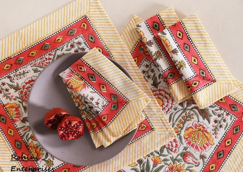 ผ้าเช็ดปากผ้าฝ้ายออกแบบได้ตามต้องการใช้สำหรับโรงแรมบ้านแต่งเครื่องบินบ้านแบบเรียบพิมพ์ลายบล็อกทำด้วยมือ