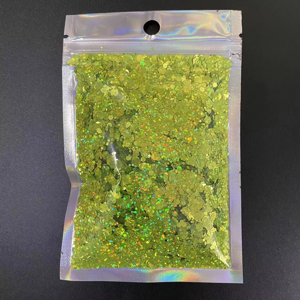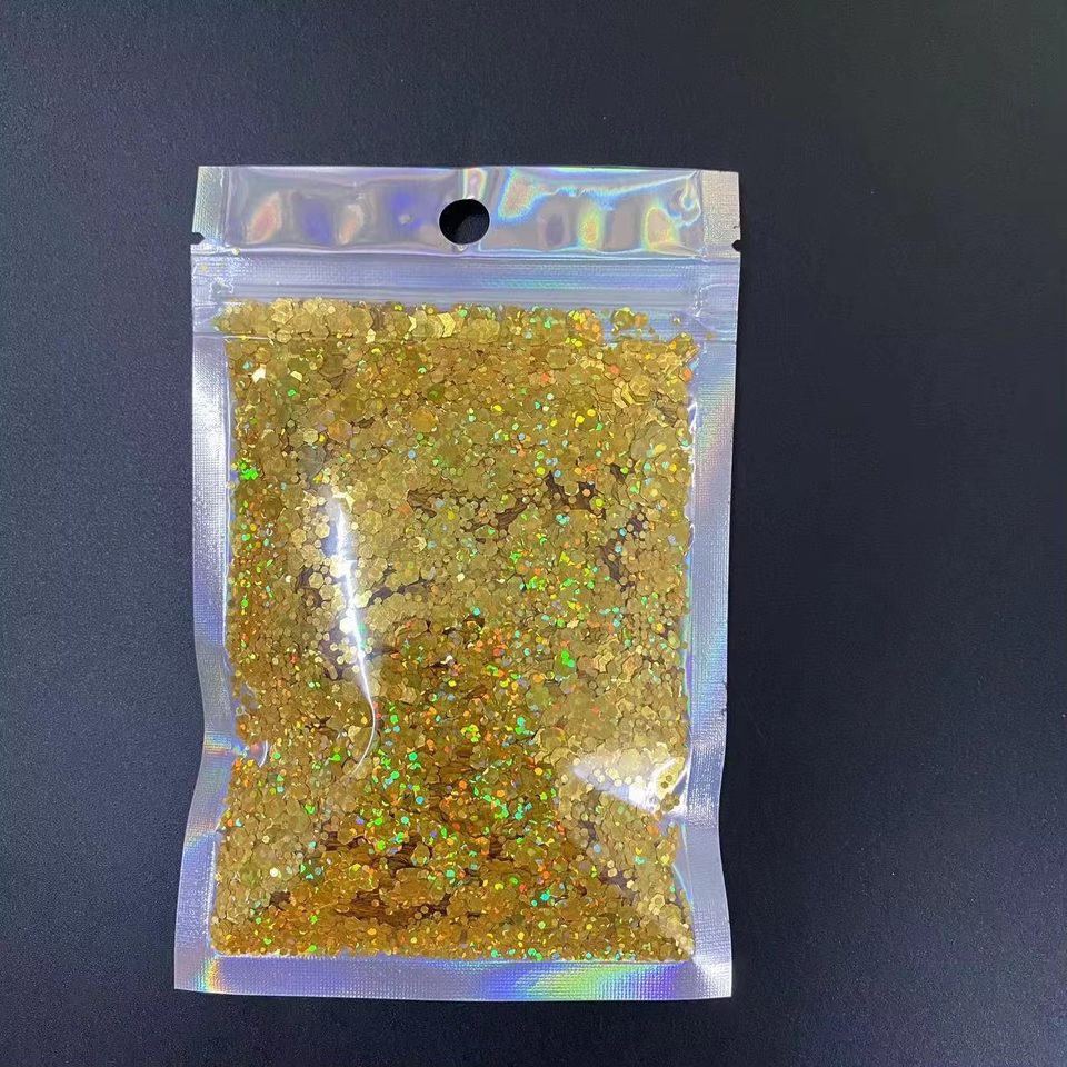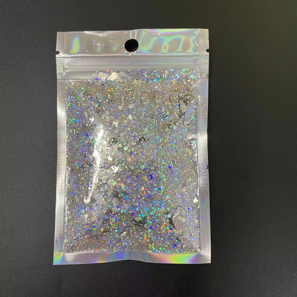 Wholesale Custom Size PET 10g/Bags Holographic Chunky Glitter Powder Pigment Coating Pigment for Nail Art & Craft Decoration