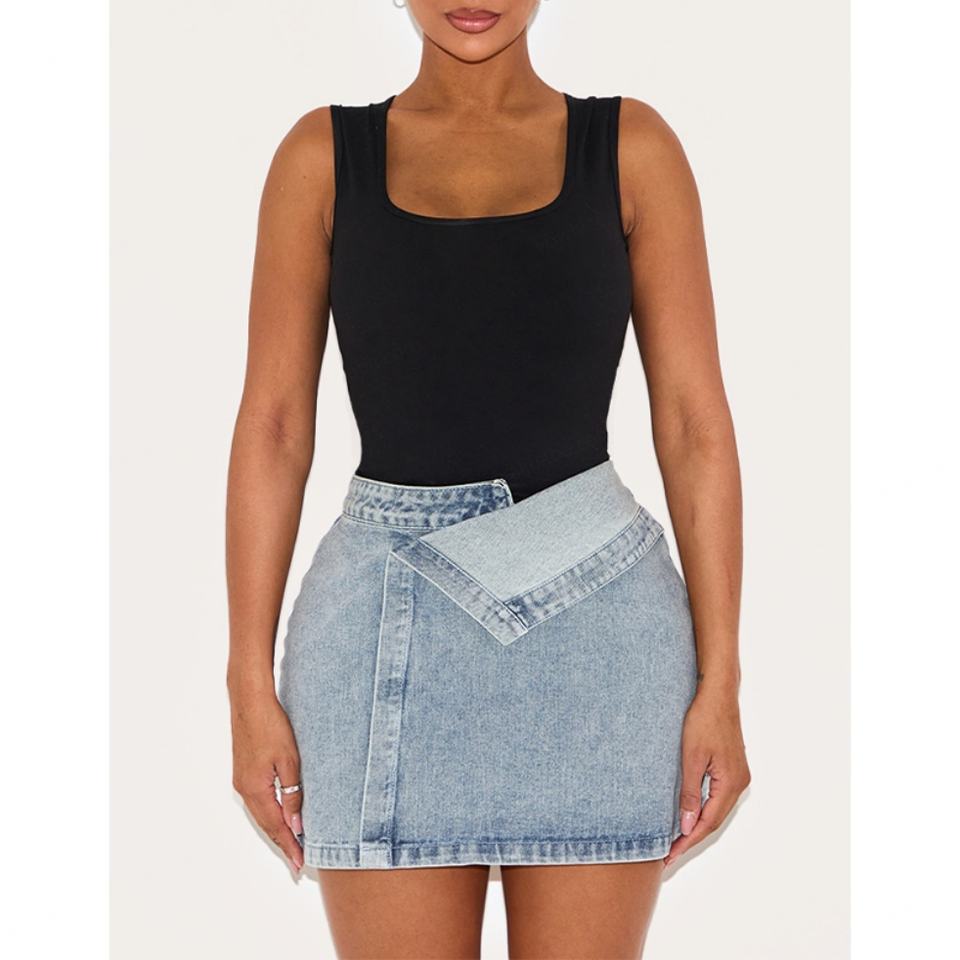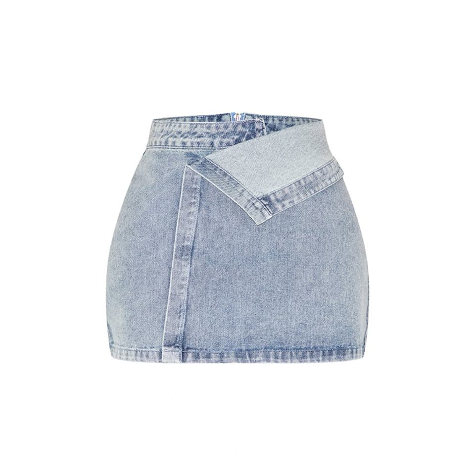 กระโปรงสั้นผู้หญิงสั่งทำขายส่ง ผ้าเดนิมสีน้ำเงินฟอก คุณภาพสูง ผ้าฝ้าย แต่งจีบ สไตล์วินเทจ