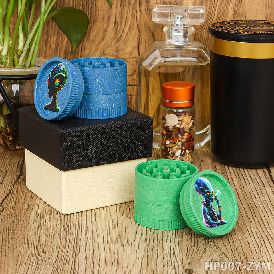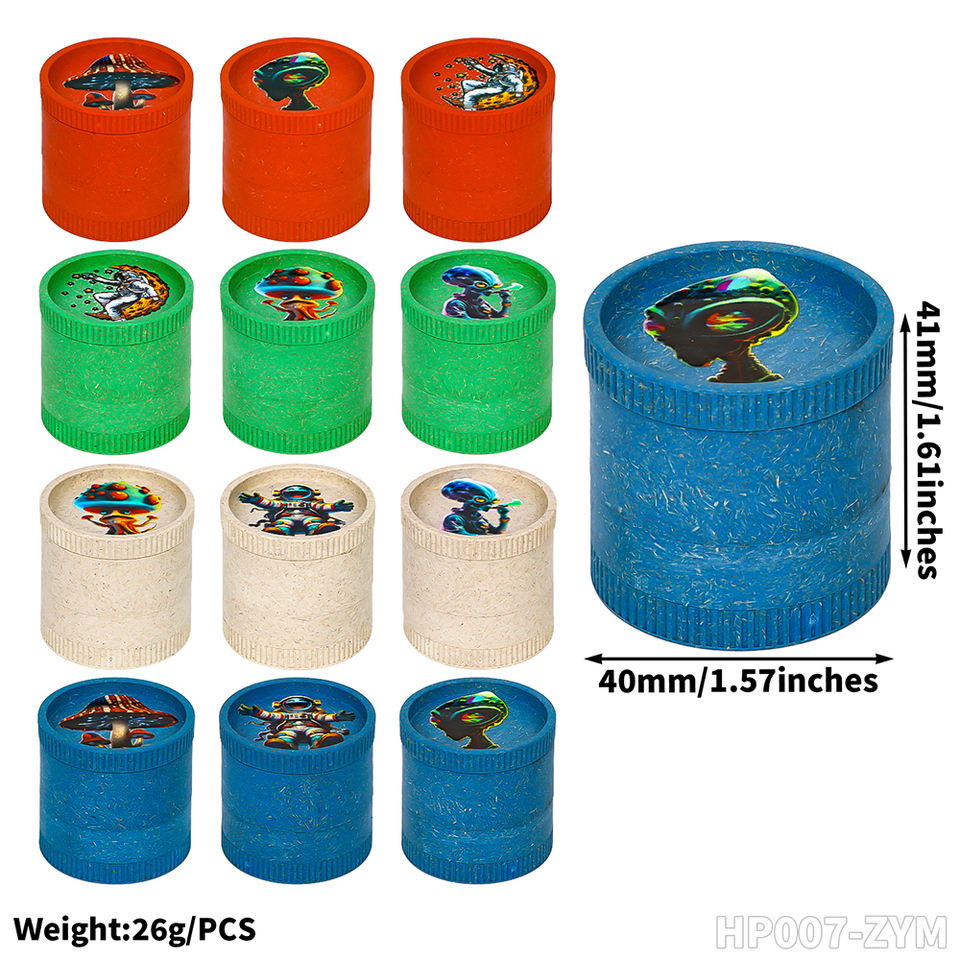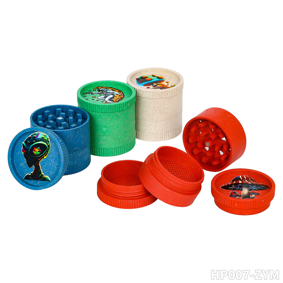 เครื่องบดสมุนไพรแบบใช้มือวัสดุเส้นใยแบบย่อยสลายได้4ชั้นอุปกรณ์เสริมสำหรับสูบตามสั่ง