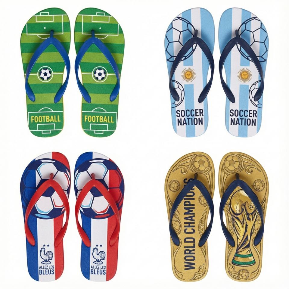รองเท้าแตะฟุตบอลแบบขายส่งสั่งทำได้ พิมพ์ลายทีมฟุตบอลโลก ของขวัญสำหรับแฟนบอลจากโรงงานโดยตรง