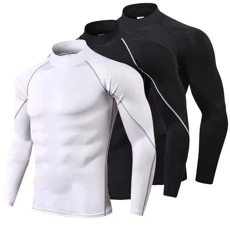 เสื้อยืดคอมเพรสชั่นคอสูงแขนยาวสั่งทำขายส่งสำหรับผู้ชาย UPF50 ระบายอากาศได้ดี แห้งเร็ว เหมาะสำหรับออกกำลังกายที่ยิม