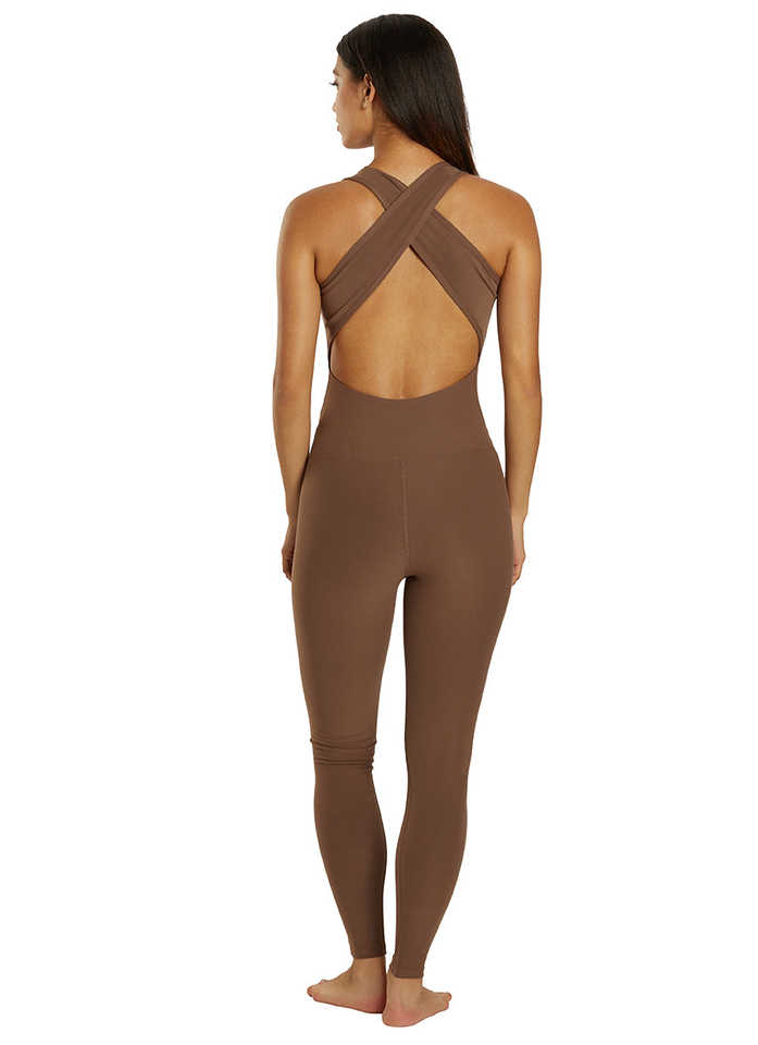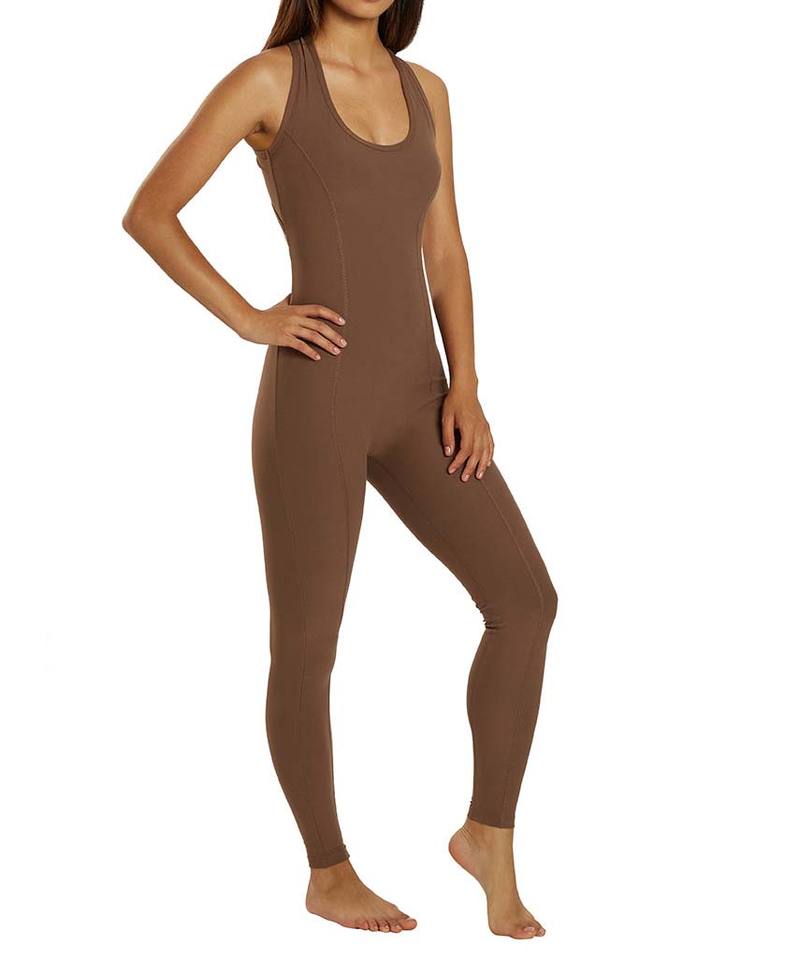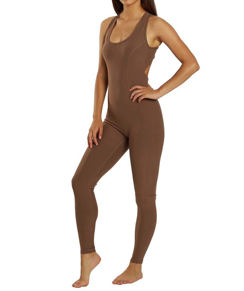 ชุดออกกำลังกายโยคะแบบชิ้นเดียวสำหรับผู้หญิง สีน้ำตาล แขนกุด ผ้ายืดสแปนเด็กซ์/ไนลอน ผลิตตามสั่งขายส่ง