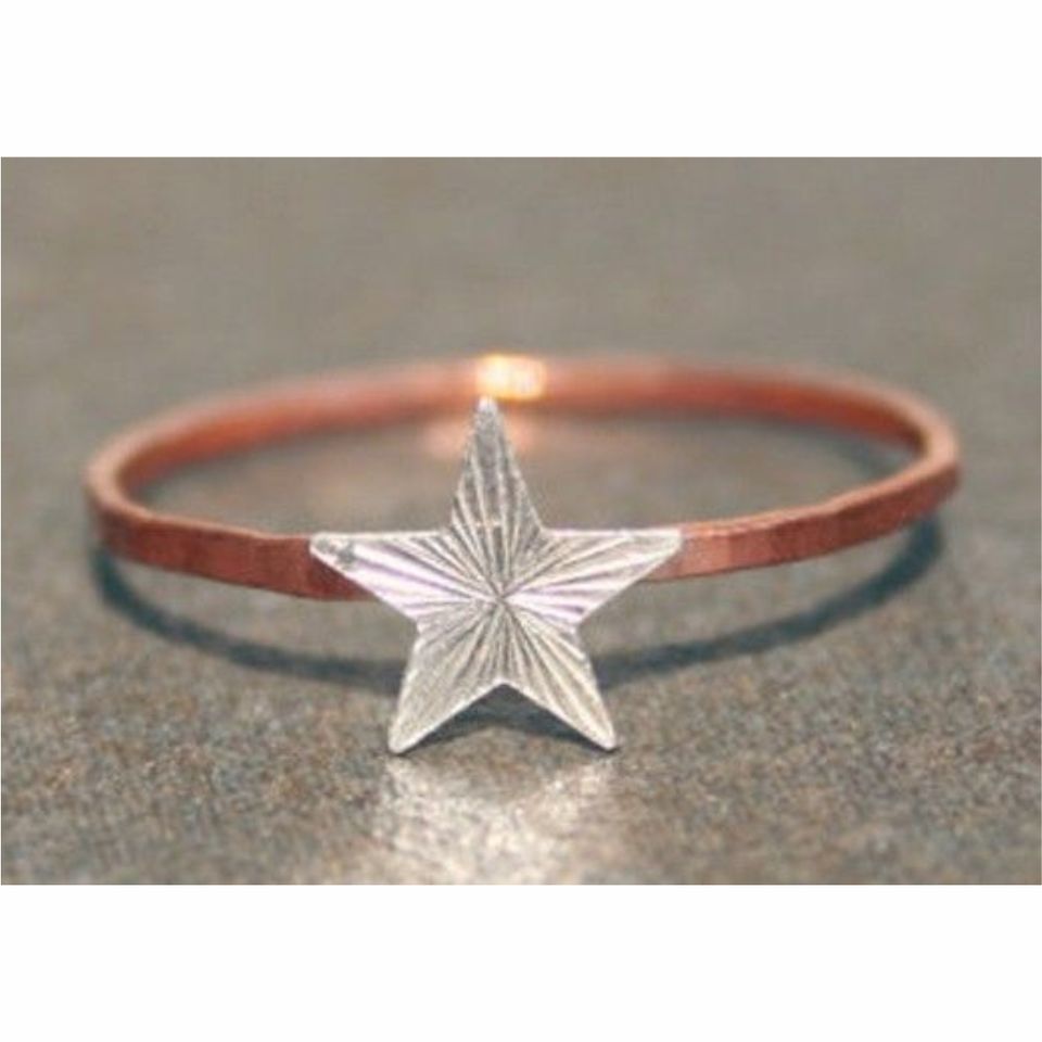 แหวนนิ้วรูปดาวสั่งทำขายส่ง แหวนทองแดงบางตอกลายด้วยมือ ประดับดาวสีเงิน คุณภาพสูง แหวนสองสีแบบซ้อนได้