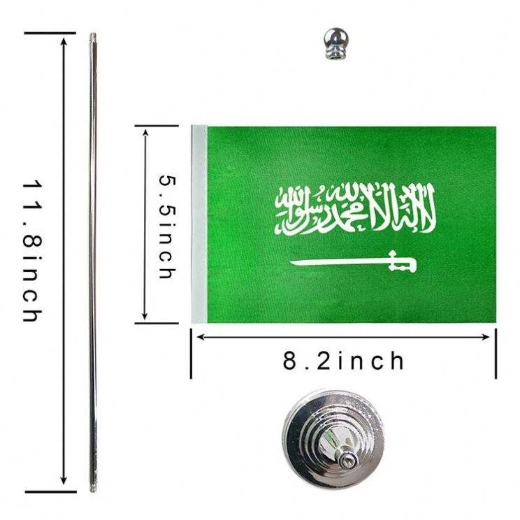 ธงตั้งโต๊ะขนาดเล็กแบบกำหนดเองขายส่ง ธงตกแต่งโต๊ะสำนักงานซาอุดีอาระเบีย พร้อมก้านและฐาน