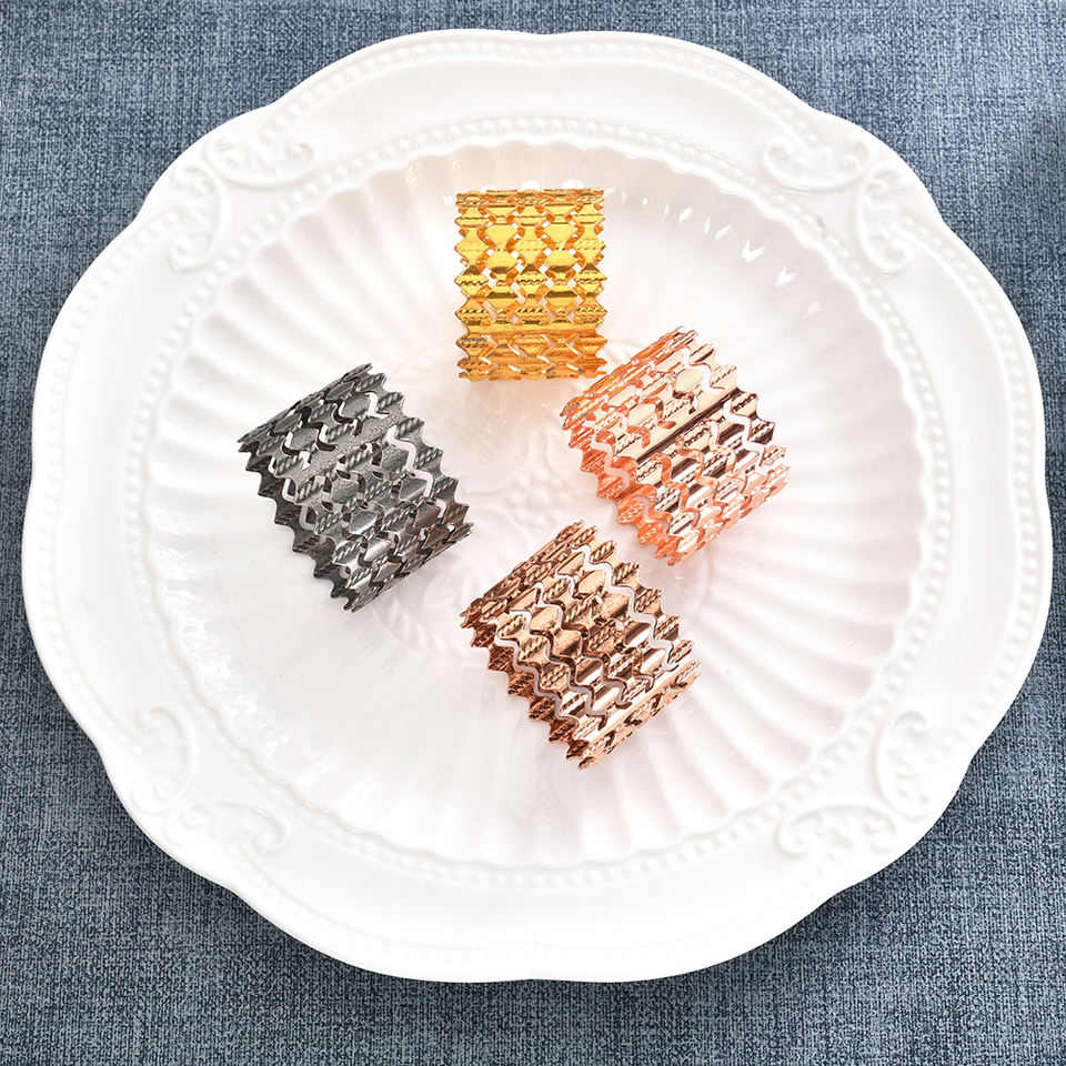 แหวนผ้าเช็ดปากโลหะสีดำดีไซน์คลื่นเครื่องใช้บนโต๊ะอาหารในโรงแรมสีทองหลากหลายแบบ