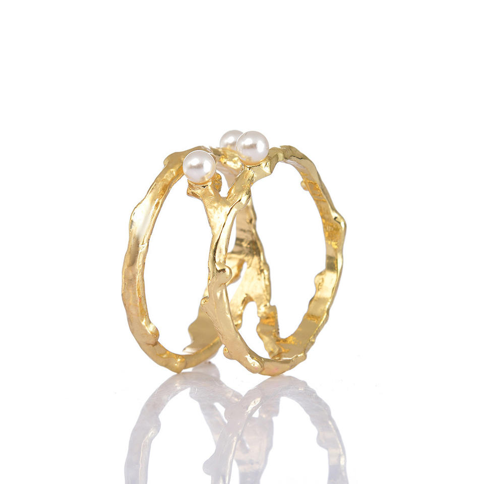 แหวนรัดผ้าเช็ดปากแบบอเมริกันเคลือบทอง ทำจากโลหะผสมสังกะสี เป็นมิตรกับสิ่งแวดล้อม ทนทาน ประดับมุก สำหรับงานแต่งงานและร้านอาหาร ขายส่งตามสั่ง