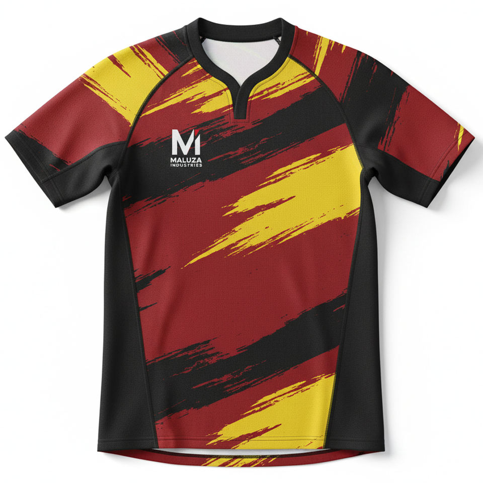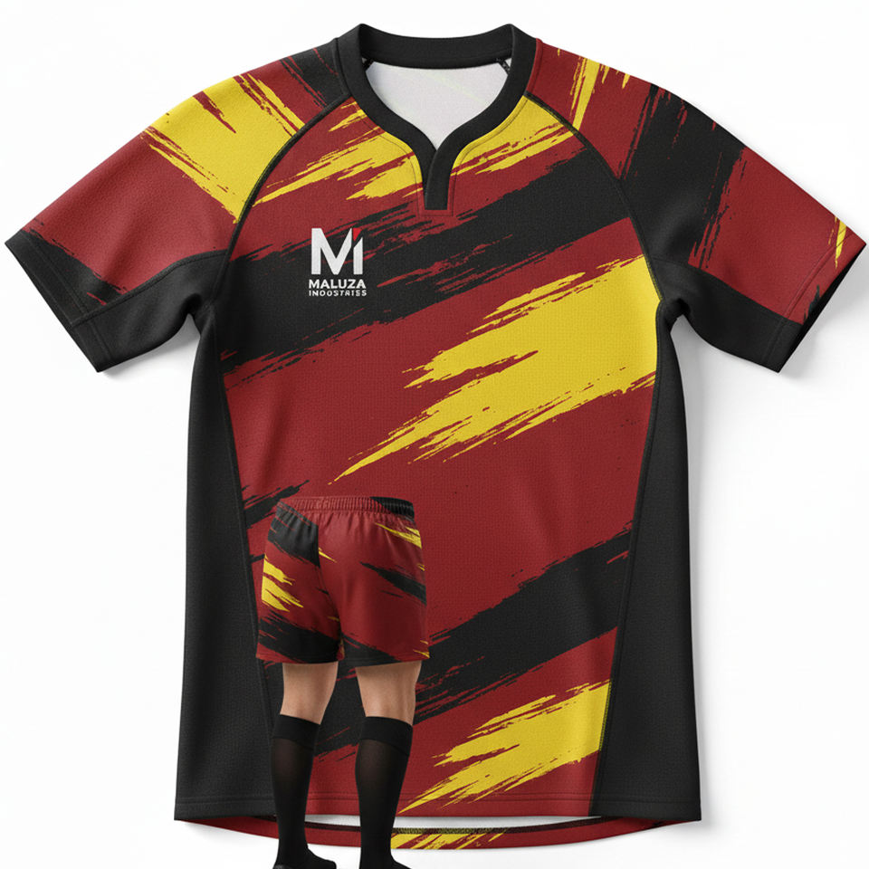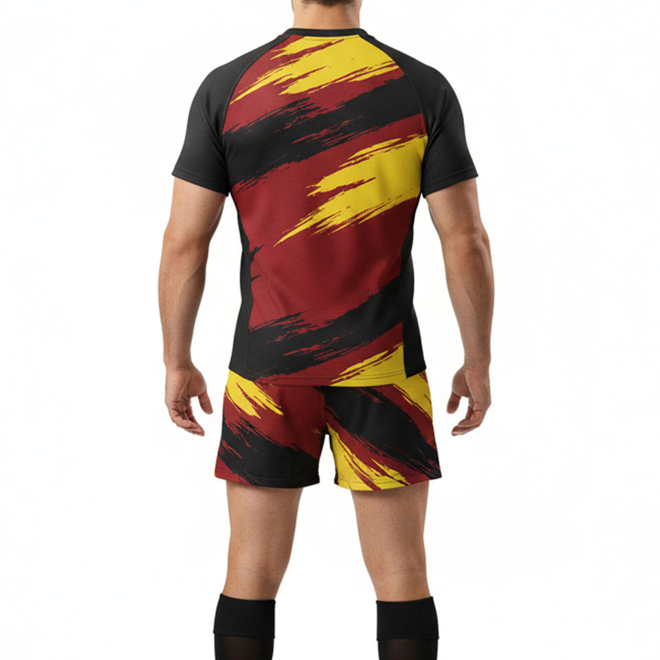 ชุดฝึกซ้อมรักบี้แบบซับลิเมชั่นสั่งทำขายส่ง เนื้อผ้าโพลีเอสเตอร์ผสมสแปนเด็กซ์ ระบายอากาศได้ดี ยืดหยุ่นสูง ชุดยูนิฟอร์มรักบี้แบบ OEM