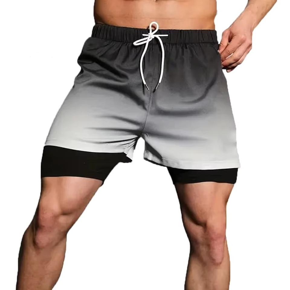 กางเกงขาสั้นเล่นฟิตเนส2-in-1ของผู้ชายพิมพ์ลายซับลิเมชันตามสั่งชุดวิ่งกีฬาวิ่งจ๊อกกิ้ง
