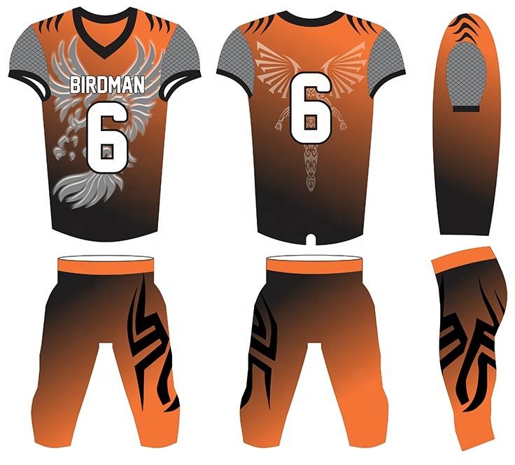 ชุดยูนิฟอร์มอเมริกันฟุตบอลสำหรับผู้ใหญ่แบบสั่งทำพิเศษ พิมพ์ลายแบบซับลิเมชั่น แขนสั้น ระบายอากาศได้ดี ไซส์ใหญ่ ผลิตจากโพลีเอสเตอร์ 100%