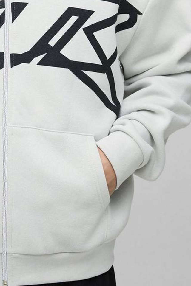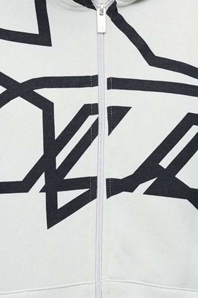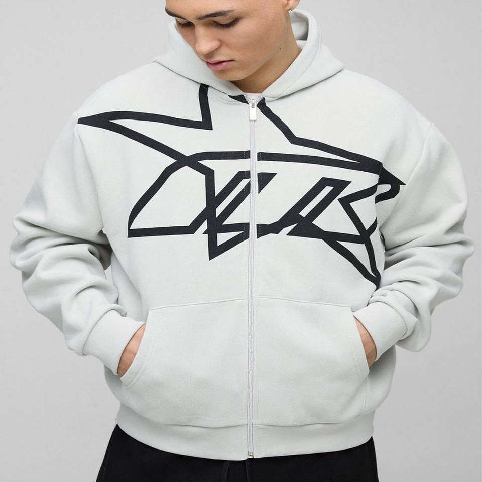 เสื้อฮู้ดดี้ผู้ชายแบบซิปพิมพ์ลายดาวทรงโอเวอร์ไซส์สีเทาอ่อน ผ้าฝ้ายผสม ระบายอากาศได้ดี รับผลิตตามสั่งขายส่ง