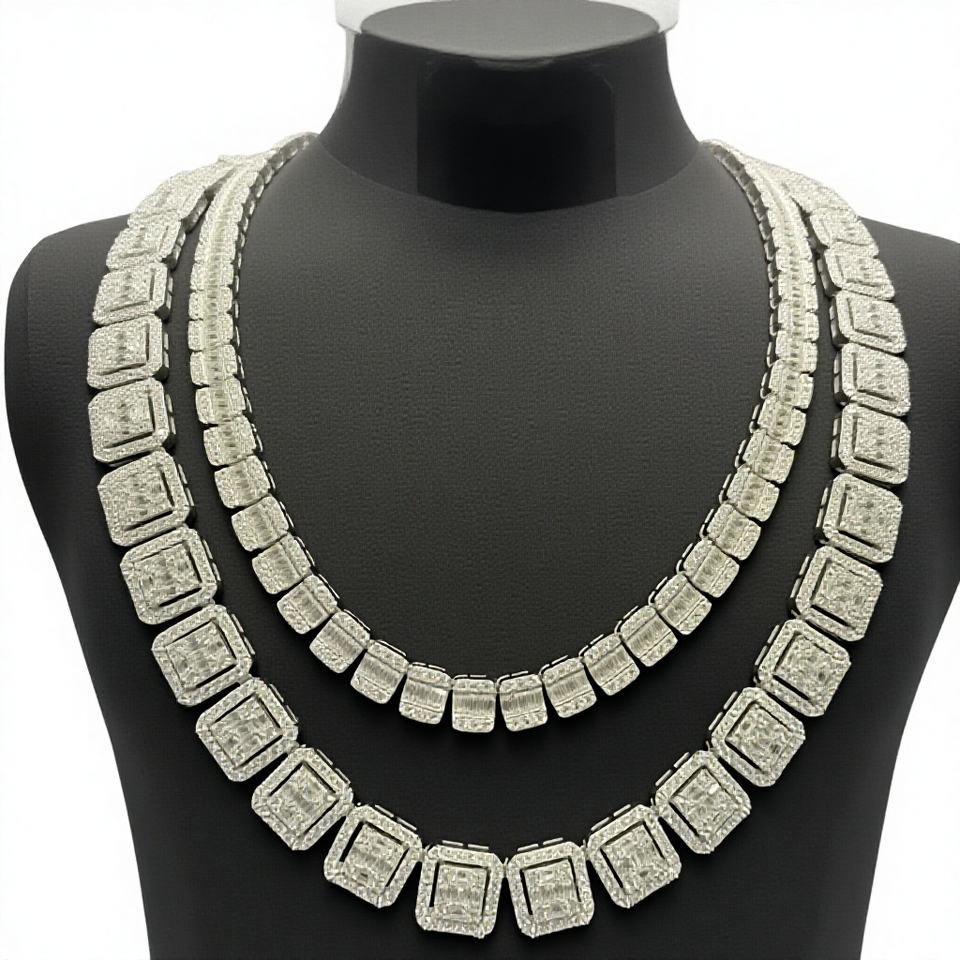 สร้อยคอเทนนิสฮิปฮอปแบบขายส่งสั่งทำได้สำหรับผู้ชายและผู้หญิง ชุบทอง 18K ชุบโรเดียม เพชรทรงเหลี่ยมเจียระไน VVS มอยส์ซาไนต์ สายคิวบา