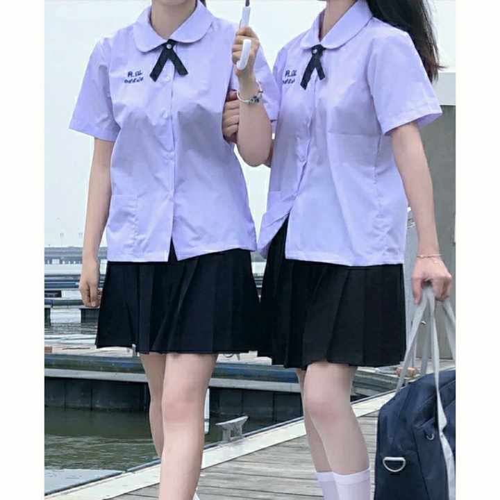 ชุดนักเรียนหญิงสั่งทำขายส่งจากประเทศไทย กระโปรงจีบสีพื้นเอวสูง สำหรับนักเรียนมัธยมปลาย เสื้อผ้าผู้หญิง