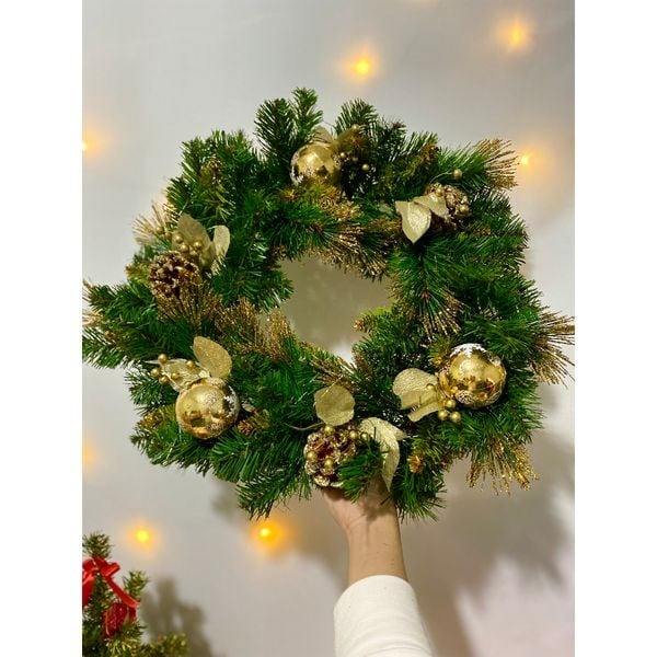 พวงมาลาใบไม้สามแบบกำหนดเองพร้อมดิ้นทองและเครื่องประดับตกแต่งคริสต์มาสจากเวียดนาม